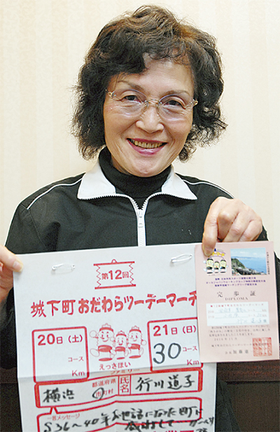 鶴ヶ峰で理容店「BARBER NAMEKAWA」を営む行川道子さん(69)が昨年11月、小田原市などが主催するウォーキング大会「城下町おだわらツーデーマーチ」に参加した。