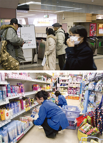 二俣川駅の商業施設、ライフとグリーングリーンでは11日、午後5時で臨時閉店。ハックドラッグ二俣川店(グリーングリーン1階)では一部商品の陳列が乱れたが、被害はなかった。