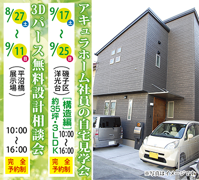 tvkハウジングプラザ横浜の「アキュラホーム平沼橋展示場」が、建築中及び完成した社員の自宅を公開する企画を発表した。社員ならではの家づくりは必見の価値あり。