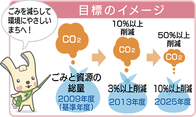 計画目標では、ごみ処理に伴い排出される温室効果ガスを25年度までに09年度比で50%以上(ごみと資源の総量は同10%以上)削減することを掲げる。しかし、計画策定から1年が経過したにも関わらず、市民からは「『3R夢』(スリム)の読み方が分からない」という声まで聞かれるなど、温室効果ガスを10%以上削減とする中間目標の達成も厳しい状況となっている。