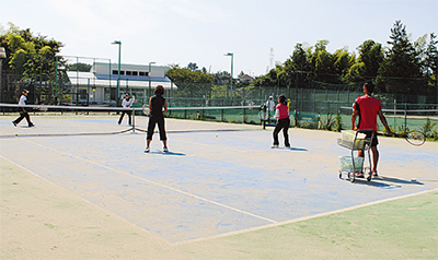 地元に愛されて今年で33年の同クラブ。緑に囲まれた閑静なクラブで、健康維持やスキルアップなどさまざまな目的で幅広い世代の会員がテニスを楽しんでいる。日の出と同時に利用できるのも人気の秘訣だ。