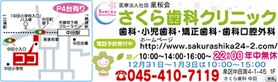 年中無休で夜10時まで診療している市営地下鉄中田駅至近の「さくら歯科クリニック」は、正月を含む年末年始も無休で診療を行う。年中無休と掲げても、盆と正月には休診日を設けることがあるなか、文字通り「年中無休」となる。