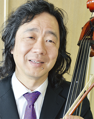 2月11日にサンハートで開かれる「バレンタインコンサート」に出演するコントラバス奏者