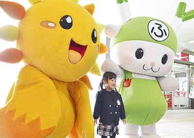 旭区のマスコットキャラクター「あさひくん」と埼玉県深谷市のイメージキャラクター「ふっかちゃん」が夢の競演―。