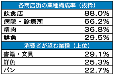 消費者側からも、商店街を利用しない理由に「一カ所で用事がすまないこと」をあげる人が最多だったことから、魅力ある商店街づくりには偏りの是正が求められていると言えそうだ。