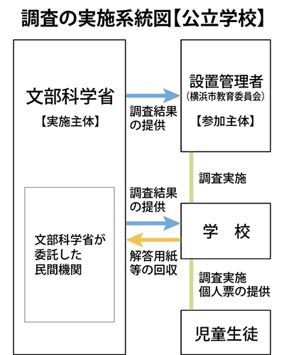 学校別成績の公表をめぐっては、実施要領に法的な拘束力がなく、全国各地で社会問題となっていた。横浜市教委は、現行テストの開始当初(07年)から市全体の調査結果を公表し、各学校も「学校だより」やホームページなどで公表している。横浜市立小学校長会の角野公利会長(中区北方小学校長)は「これまでも各学校で公表してきたが、学校別の順位付けはしていない」と話す。