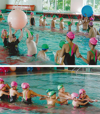 水上運動会には、同クラブに通う子どもたちを中心に87人が参加。大玉ころがしや綱引き、障害物競争などが行われ、いつもと違う「プール」での運動会に大きな歓声が上がっていた。