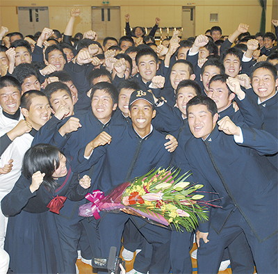 鈴木紀代子校長、水谷哲也監督、母のミカさんが同席した会見では「自分は中学が軟式なので、同じような野球少年の目標になれれば。いろいろな人に恩返しできる選手、活躍できる選手になって社会貢献がしたい」と抱負を語った。さらに「隼人の校訓である『必要で信頼される人となる』をしっかりやっていきたい」と母校への思いを口にした。