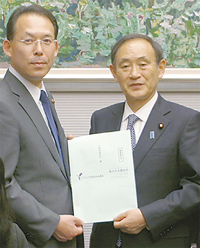 私が委員長を務める、横浜市会基地対策特別委員会の委員12人が1月21日、首相官邸を訪れ、菅義偉官房長官に、「市内米軍施設の早期全面返還及び返還施設の跡地利用等に関する要望書」を手渡しました。その一部を紹介します。