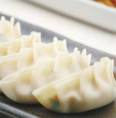 同店最大の売りは、店名にもあるように生の「餃子」。鹿児島産黒豚や国産野菜など、素材の一つひとつにこだわった逸品だ。餃子作りはすべて手作りで行われているのも大きな特長。生姜の効いた「姫餃子」やニンニクがアクセントの「殿餃子」(18個入600円、36個入1000円)、「海鮮丸餃子」(12個800円)の3種類を販売している。