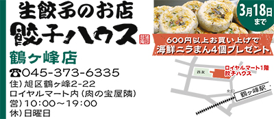 鶴ヶ峰駅前のロイヤルマート内に昨年オープンした、お持ち帰り専門店「餃子ハウス」。同店が販売する「こだわり」の生餃子や焼売が口コミで評判となり、人気を集めている。