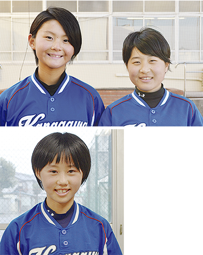 万騎が原中学校ソフトボール部の高梨萌夏(もえか)さん(2年)と二之宮凜佳(りんか)さん、鶴ヶ峯中学校同部の矢藤輝羅菜(きらな)さん(1年)の3人が、3月27日から29日に福岡県北九州市で開催される「第11回都道府県対抗全日本中学生女子ソフトボール大会」の神奈川県選抜メンバーとして出場する。