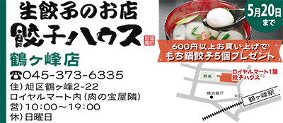 鶴ヶ峰駅前のロイヤルマート1階にある、持ち帰り専門店『餃子ハウス』。店名にもあるように、こだわりの「生餃子」や「焼売」が口コミで評判となり、人気を集めている。