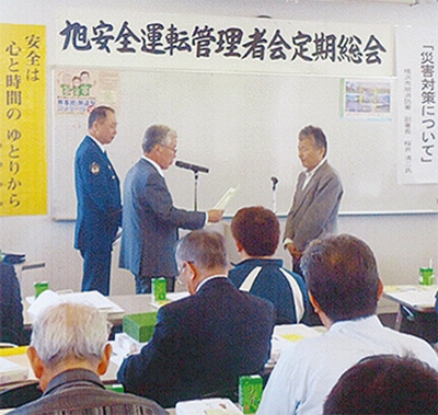 旭安全運転管理者会(佐々木守雄会長)が5月13日、旭区役所で定期総会を開催した。安全運転に関する表彰=写真=のほか、講演が行われた。