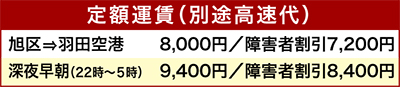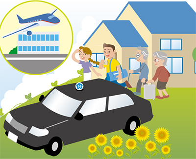 定額タクシーは旭区内からであれば8000円(別途高速代1000円程度)で乗車が可能。利用者からは「(電車やバスと違い)時間に縛られない」「重い荷物を持って、長い距離を歩かなくて済むのがいい」「ドアツードアで自宅前から空港まで行かれるので便利」「足の悪いおばぁちゃんとの旅行に嬉しい」などの感想も。定額タクシーの利用は電話での事前予約が必要。「お盆時期は予約が集中します、お早めに」とのこと。詳細は同社HPへ。