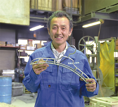 今回開発したハンガーは溶かしたアルミを専用の型に流し込んで製作した。「服が型崩れしにくく、またデザインにもこだわったハンガーです」と笑顔で話すのは同社の大林淳一代表取締役。しかし、その製作には多くの苦労があった。