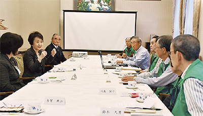 帷子川の環境保護活動を行っている水辺愛護会「帷子川はふるさとの川の会」(前原修代表)の会員と林文子横浜市長が語らう「ぬくもりトーク」が10月13日、西区にある市長公舎で行われ、同会が日ごろの活動報告や、意見交換などを行った。はじめに同会の前原代表がパワーポイントを使って、活動内容や活動によって川の水質が徐々に改善していったことなどを報告。続いて会員一人ひとりが、「川の会の活動を通じて感じたこと」をテーマに、活動のやりがいや、若手人材の不足といった課題などを語った。