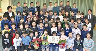 高橋校長は受賞について「児童らの励みになる」と笑顔。6年生の男子児童は「江口先生に、歯の裏側や間とかをしっかり磨くことが大切だと教えてもらった」と話し、「もっといい賞がもらえるように(歯みがきを)がんばりたい」。江口さんは「2年前に文部科学大臣賞を受賞した時より、さらに虫歯の数が少ない」と語り「歯みがきのほかにも、いろんなことを頑張ってほしい」と話した。