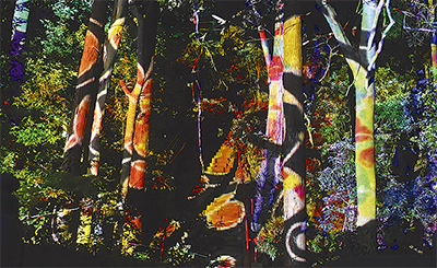 企画初日の18日は、点灯開始時刻である午後6時から、人が集まった。同日は、機材のトラブルなどにも見舞われたが、プロジェクターから映し出された色とりどりの模様が、鎮守の森を照らすと、普段とは異なった不思議な雰囲気の空間を作り出した。