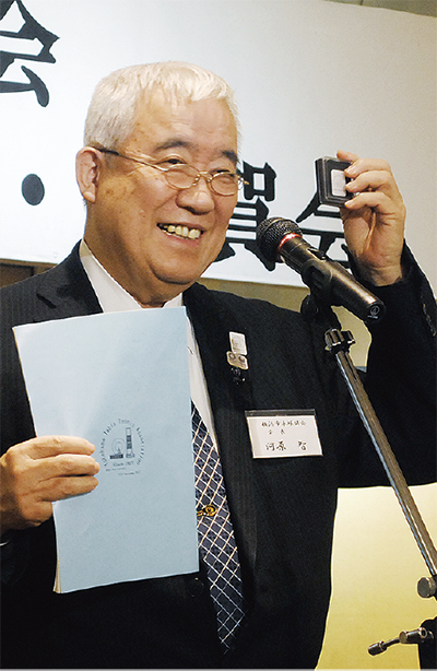 式典の冒頭では河原会長が直近10年間の協会の歩みを総括。中でも一番の思い出として2009年に横浜アリーナで開催された世界選手権を挙げ「約1万5千人の会場が連日満席になった。国際卓球連盟の会長からは『こんな素晴らしい大会は見たことない』と言って頂いた」と振り返った。