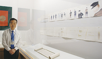 「金河奇勝」は約15mの絵巻のため、展示スペースの関係もあり、これまで一度に広げて見ることができなかった。展示中のレプリカは、絵巻の軸を取り付ける前の段階のため、これまで不可能だった、すべてを広げて見渡せる全開展示が可能になっている。「明治150年に向けた企画を考えていた時でしたので、ちょうどぴったりのお話をいただき、感謝しております。すでに多くの方に来館いただいていますが、会期も通常より長くなっておりますので、より多くの方に来館していただければ」と企画に携わる齊藤達也課長は話す。会期は9月16日 まで。入場無料。詳細・問い合わせは同館【電話】045・364・4461へ。