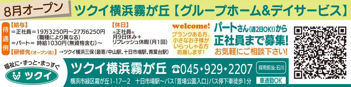 グループホームとデイサービスの複合型介護施設『ツクイ横浜霧が丘』が8月に新しくオープンする。随時、同施設の入居者を募集中だ。