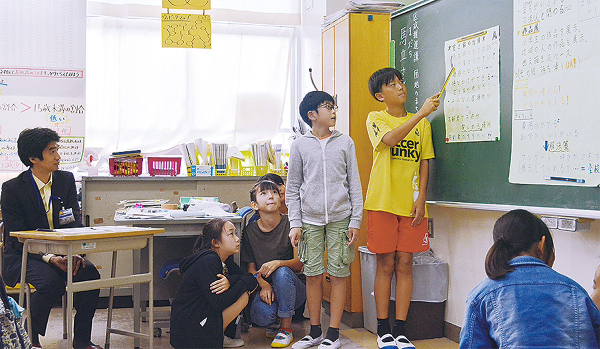 授業では実際に地域で町おこしに携わる人に話を聞いたり、話し合いなどを行うことで、自分たちができることを考えてきた。アイデアの実現を目指し、学校側から区役所へ呼び掛けたことで区役所区政推進課の職員が同クラスを訪問。児童たちはグループに分かれ、それぞれが考えた町おこしのアイデアを発表した。