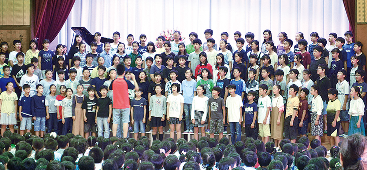 倉岡校長は「歴代の先生、保護者、地域の皆さまなどの支えがあったからこそ60周年を迎えられた。皆さんにはこれからも、この輪をさらにつなげていってほしい」と児童らに呼び掛けた。