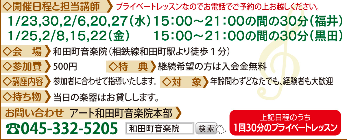 プライベートレッスンでクラシックギターが学べる教室を和田町音楽院がおもに初心者を対象に開催している。