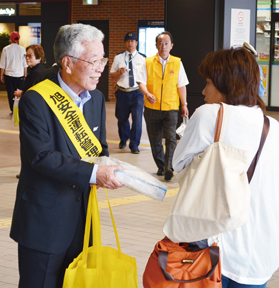 春の全国交通安全運動(5月11日〜20日)期間中の13日、二俣川駅構内で交通安全キャンペーンが行われた。