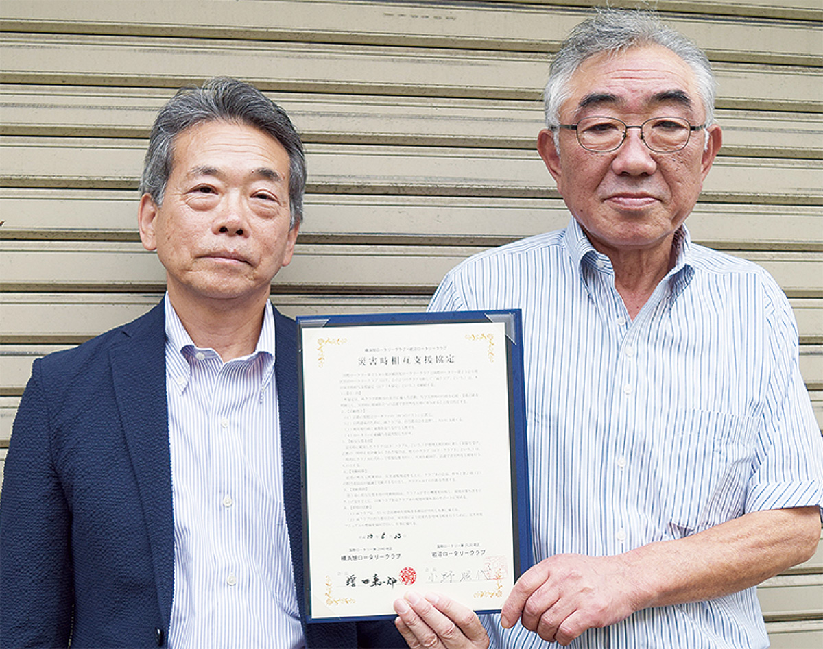 この交流が発展し、15年には両クラブ間で「災害時相互支援協定」=写真=を締結。相互で災害に備えた活動を行うほか、被災地に迅速で効果的な支援を行うことを目的としたもので、クラブ単位での相互支援協定は全国でも例がないという。