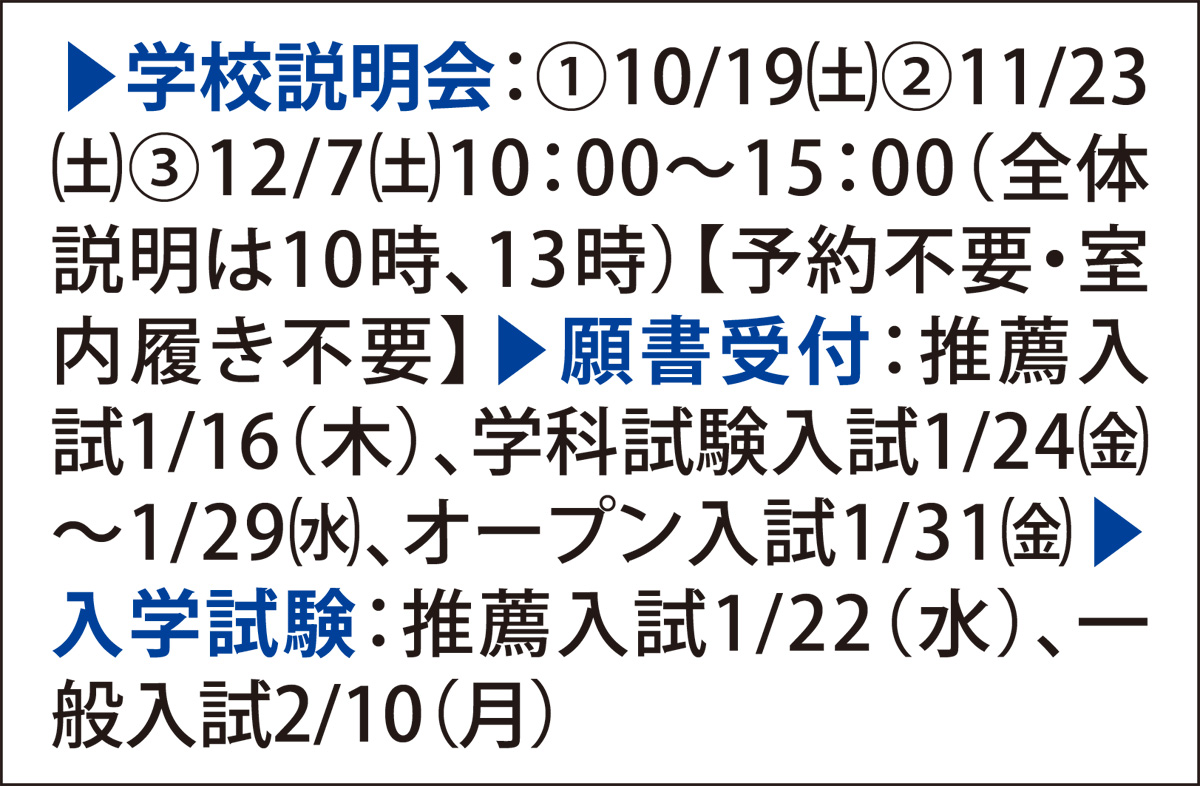 ■横浜商科大学高等学校【電話】045・951・2246/横浜市旭区白根7の1の1相鉄線西谷駅・鶴ヶ峰駅徒歩17分