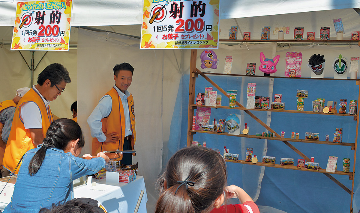 ブース内では毎年子どもたちに人気の射的ゲームを実施。参加費1回200円で5回楽しむことができ、参加者にはお菓子がプレゼントされる。