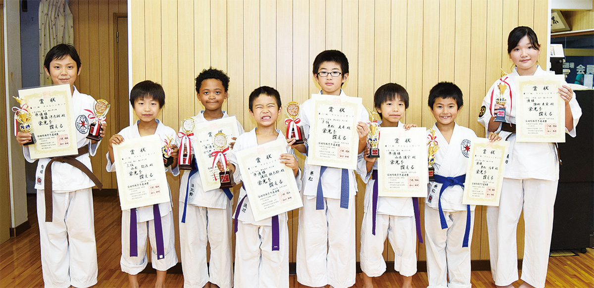 同大会は、同連盟が主催する他大会での上位入賞経験などが少ない選手が出場できるもの。同センターからは組手で猿田来実(くるみ)さんと兼松侑希君が優勝、組手で山本優宇君と齋藤洋太朗君、形で日比野タイリース有君と渡辺錬太郎君が準優勝、組手で山本龍治君、形で齋藤君と兼松直希君が3位に入賞を果たした。敢闘賞にも組手と形で3人が入賞した。