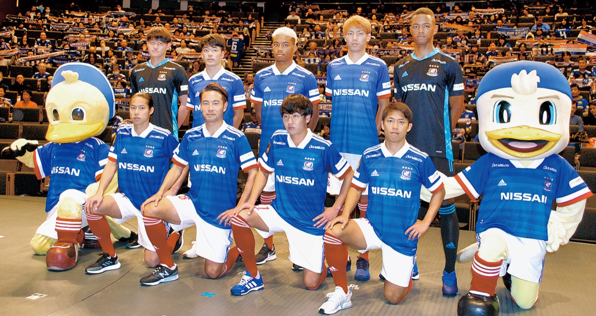 横浜F・マリノスは1月11日、西区の日産グローバル本社で2020シーズンの新体制発表会を開催した。集まった1469人のサポーターへ向け、新加入選手11人(期限付き移籍が決まっている2選手含む)のお披露目や新ユニフォームの発表が行われた。