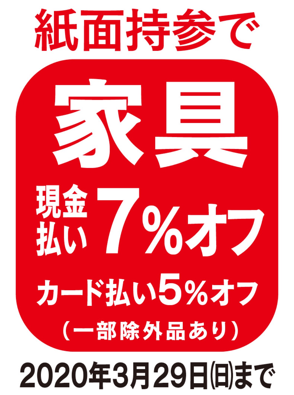 また、期間中、本紙持参で「キッチン洗剤セット」が全員にプレゼント。さらに、そのほかの家具が現金払いで7%オフ(カード払いは5%オフ)に。一部除外品あり。「店内は広々としており、ゆったりと安心してお買い物が楽しめます。将来のための電動ベッドも取り揃えていますのでこの機会にぜひ」