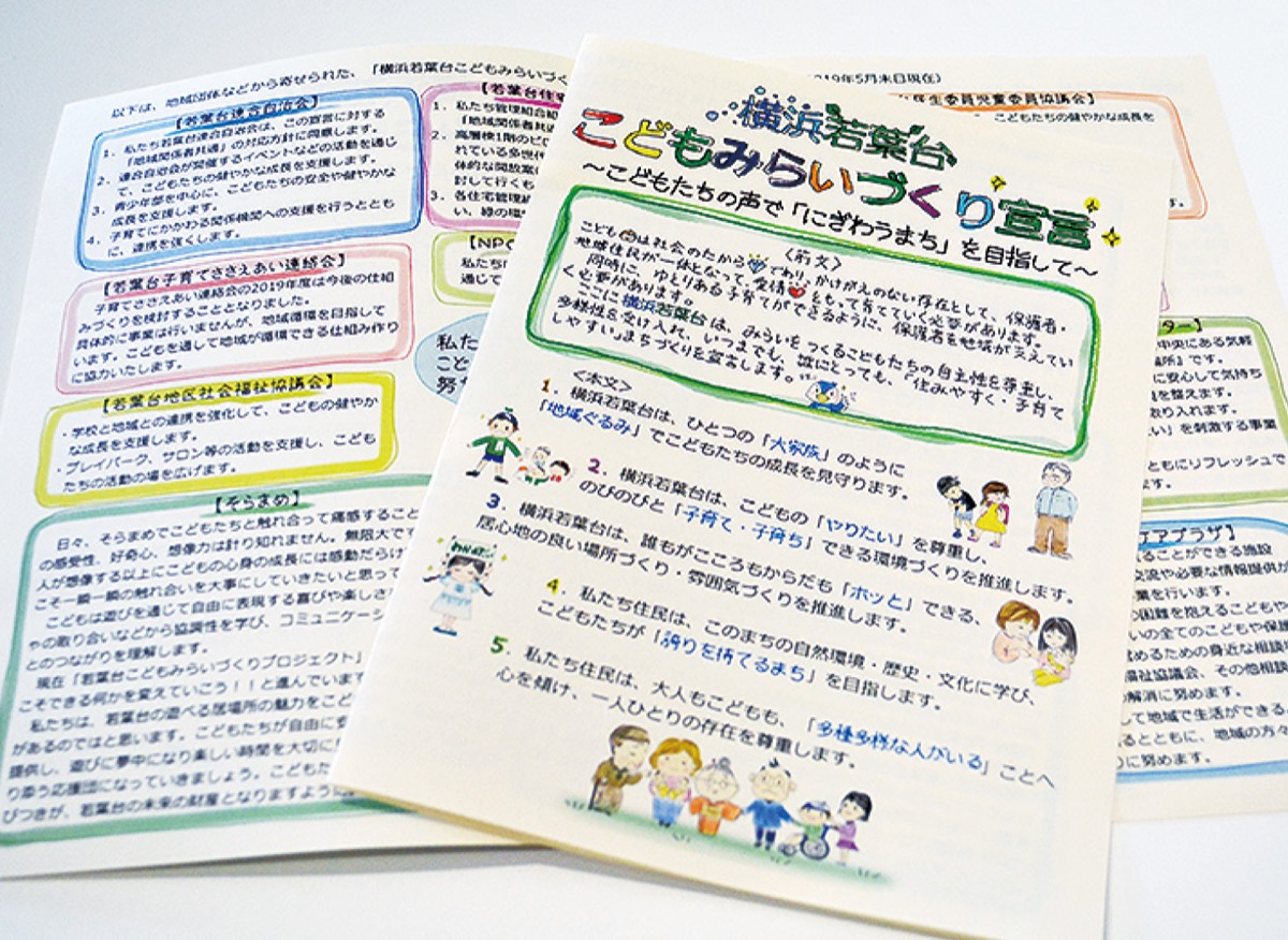 「横浜若葉台みらいづくりプラン」という地域のマスタープランに基づき、住民が主体となってまちづくりを進めている若葉台団地。昨年5月には「横浜若葉台こどもみらいづくり宣言」を制定。子育て世代を呼び込むため、地域一体となって「子育てしやすい」まちを目指している。
