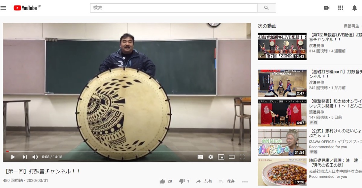 これは新型コロナウイルス感染症拡大の影響を受け、3月以降の演奏会や太鼓教室などが全てキャンセルとなったことから始めたもの。現状でもできることをと考え、無観客ライブや和太鼓指導の様子などを動画で配信している。