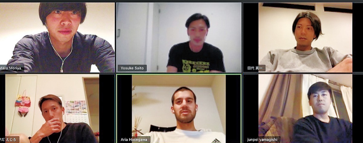発案者は森谷賢太郎選手(愛媛FC)、長谷川アーリア・ジャスール選手(名古屋グランパスエイト)、田代真一選手(横浜FC)、武田英二郎選手(同)、山岸純平さん(元法政大学体育会サッカー部)と齋藤陽介さん(元横浜F・マリノス)のユース時代を共にF・マリノスで過ごした同期の6人だ=写真。コロナ禍で「サッカーやスポーツを通して何かできることはないか」という思いから、オンライン上でのイベントで自宅にいる子どもたちと交流などを企画。6月15日・17日・23日にはオンライントークイベントが開かれ、事前応募で当選した少年サッカーチームが参加した。