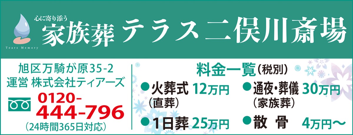 家族葬を専門に扱う地元葬儀社「ティアーズメモリー」は、万騎が原に家族葬専用ホール「家族葬テラス二俣川斎場」をオープン=写真。二俣川駅から徒歩約5分の明るくきれいな斎場で、心を込めた葬儀を提供する。