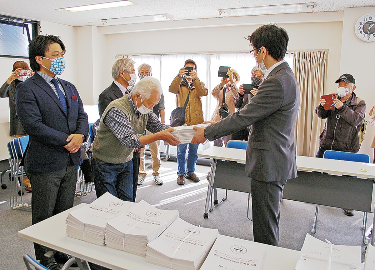 中区役所で署名簿提出を終えた同団体の小林節共同代表は「カジノ賭博を文化都市横浜に導入するという重大な決定は、主権者である市民自身が決定すべきとする憲法と地方自治法の趣旨に従い、住民投票の実施を求めてきた」と説明。1月中旬には条例案が出されるとみられるが、「市民の請求を議会は無にすべきではない」と訴えた。