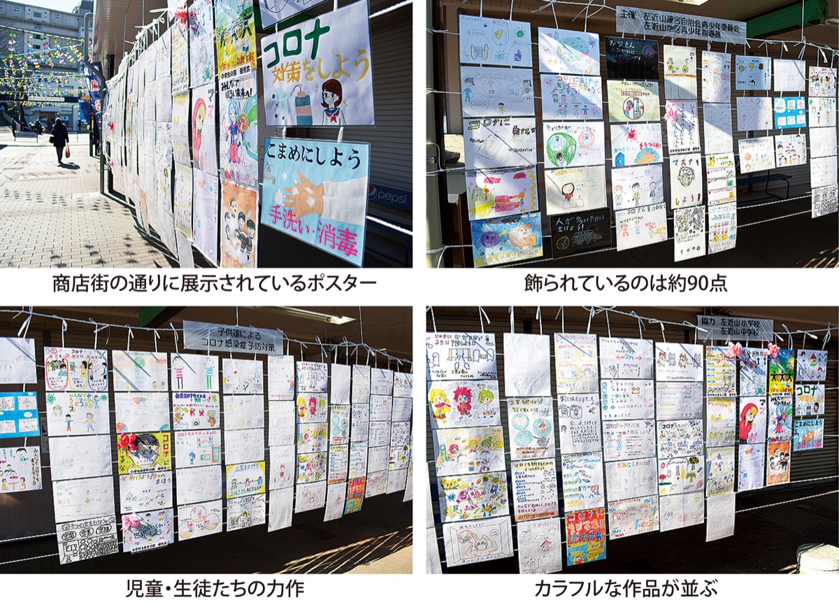 横浜市旭区の左近山団地内にある商店街・左近山ショッピングセンターで現在、地元の小中学生が描いた新型コロナウイルス感染症の予防を呼び掛けるポスターが掲示されている。