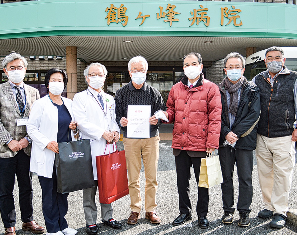 鶴ヶ峰地区の笠町内会(小磯守会長)は2月8日、横浜鶴ヶ峰病院(田中淳一病院長)に対してマスクフレーム350個を寄贈した。