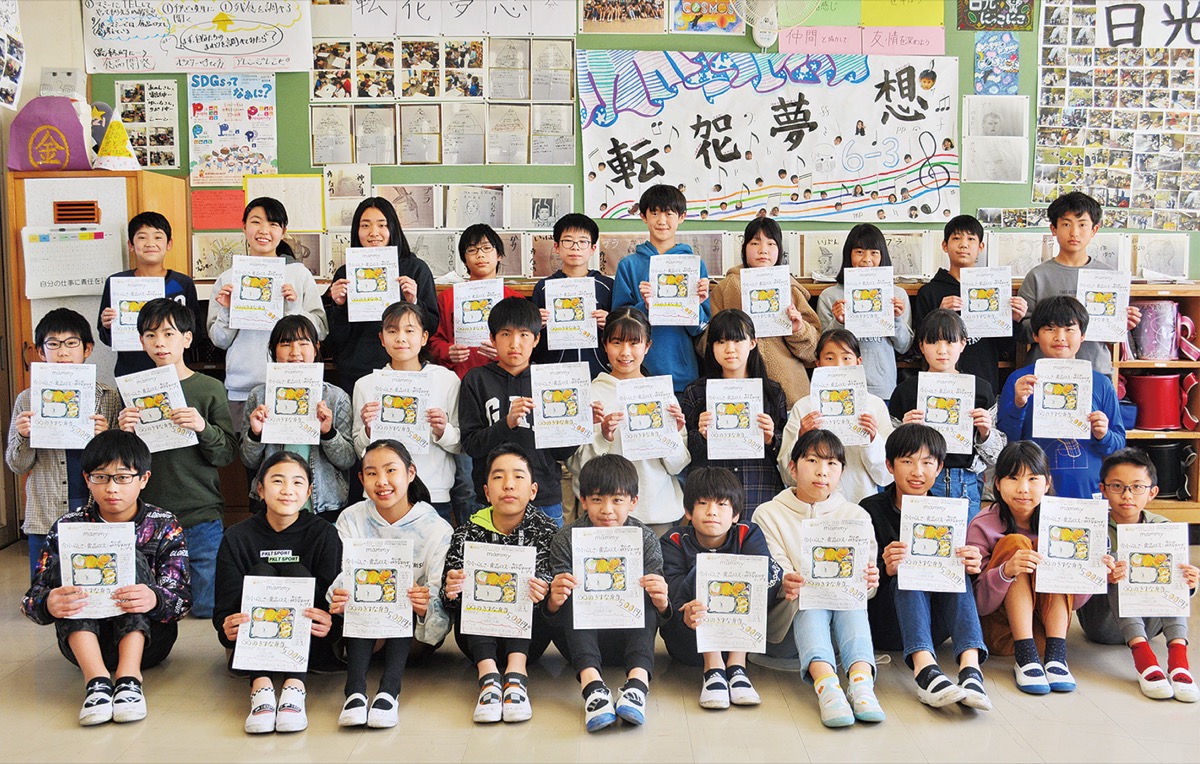同クラスは総合的な学習でSDGs(持続可能な開発目標)について学ぶ中で、食品ロスに着目。給食や家庭でも多くの食品ロスが出ていることを知り、食品ロスを減らすための取り組みを考えてきた。