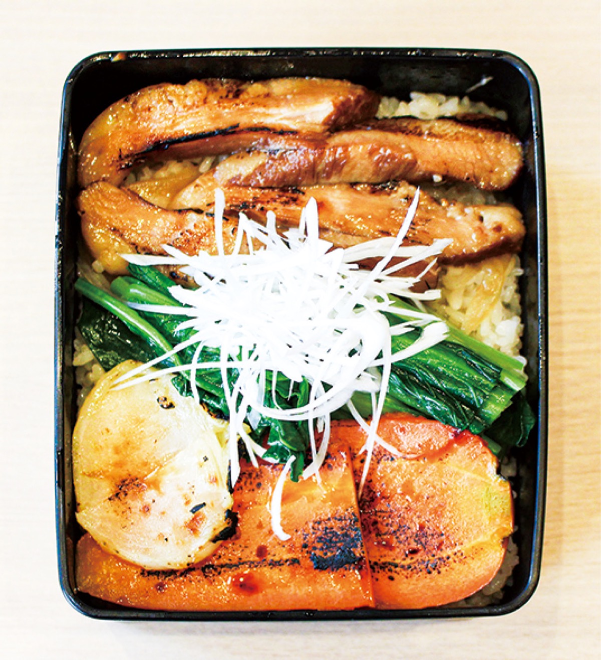 横浜18区の「農」の魅力を伝える「横浜18区丼」の第2弾となる旭区の2品目「旭区野菜と豚トロ蒲焼き丼」=写真=が、横浜市庁舎内の商業施設内にある「TSUBAKI食堂」=中区=で提供されている。