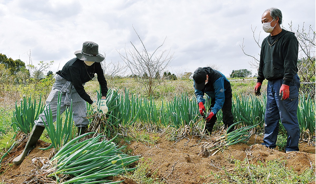 この日は、”横浜市民の台所”として生鮮食料品を供給している横浜市中央卸売市場に本社を構える「つま正」(小山正武代表)=神奈川区=の新入・中途社員が参加。野菜収穫後の畑に残された葉や茎などを取り除いて土壌を整えたり、八ッ橋さんから農家ならではの野菜の知識や食べ方など聞いたりする中で、生産者の思いに触れこだわりを感じ取った。