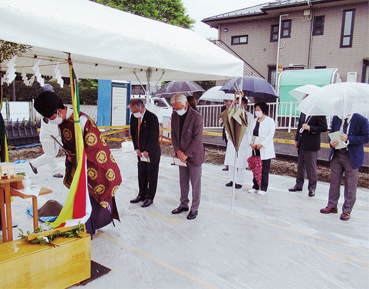 横浜鶴ヶ峰病院(田中淳一病院長)=川島町=で4月14日、新病棟建設に伴う地鎮祭が執り行われた。