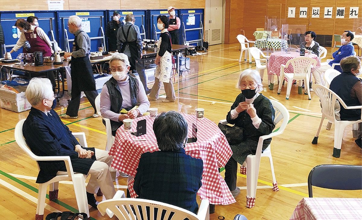 地域ケアプラザのコーヒー講座から発足した団体「ペリゴール」は、サイフォン式の本格コーヒーを来場者に提供。その他、健康診断ブースも設けられ、保健師の立ち合いのもと測定を行う場面も見られた。来場者のひとりは「町内の仲間と1年半ぶりに会えた。ワクチン接種も少しずつ始まっている中で、この催しが希望の始まりのように感じる」と話した。