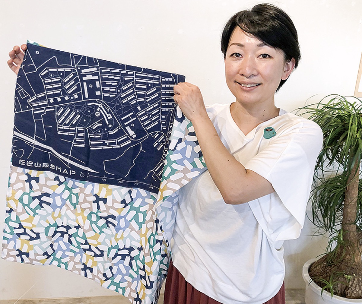 散歩部では、アトリエのオリジナル商品である左近山の地図が描かれた手ぬぐいなども散歩アイテムとして活用。「今までにない散歩を発見してほしい」とメンバー。