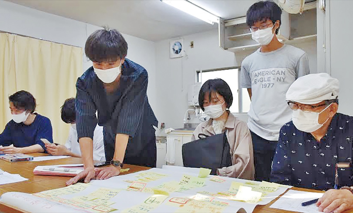 左近山団地に住みながら地域活動に参加する横浜国立大学の学生たちが、定例会を月2回開催している。定例会には左近山連合自治会会長で、NPO法人オールさこんやま理事長の林重克さんをはじめ、UR都市機構、地域関係者らが参加して議論を重ねる。